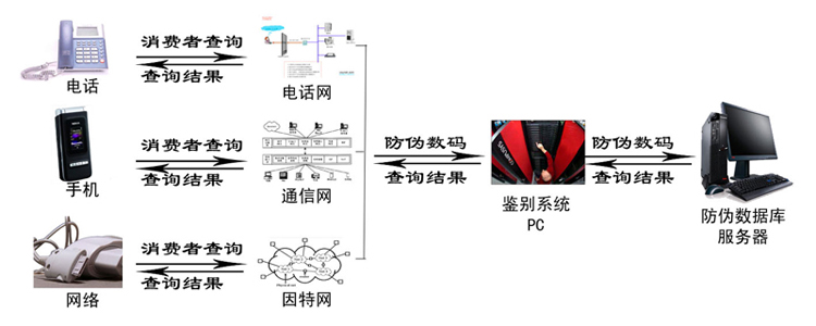 八方传媒防伪系统主要由数码管理和查询认证平台两大部分组成,数码管理系统主要实现企业客户产品资料设定,防伪码和物流码生成及管理,查询认证平台是对防伪码及物流码信息进行认证查询和信息交互的平台,用户可以通过互联网、电话、手机短信三种方式进行查询认证。