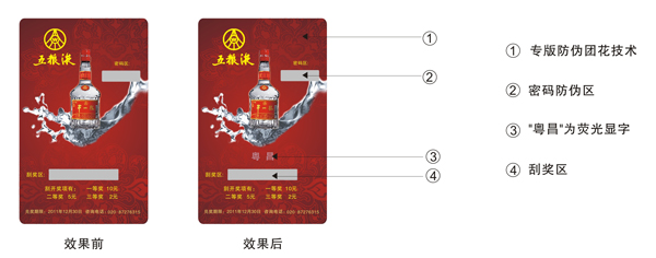 刮奖卡是兑换奖品重要凭证,如果造假,对企业的损失是很大的,因此刮奖卡防伪就显的尤为重要。